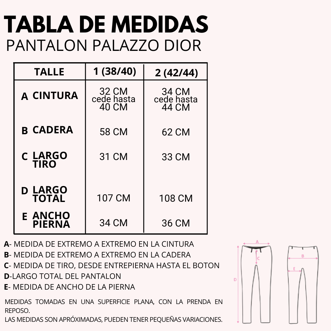 ✔️ Diseño: corte palazzo, tiro alto. Cintura al frente, elástico en la cintura trasera. Con pequeñas pinzas al frente.