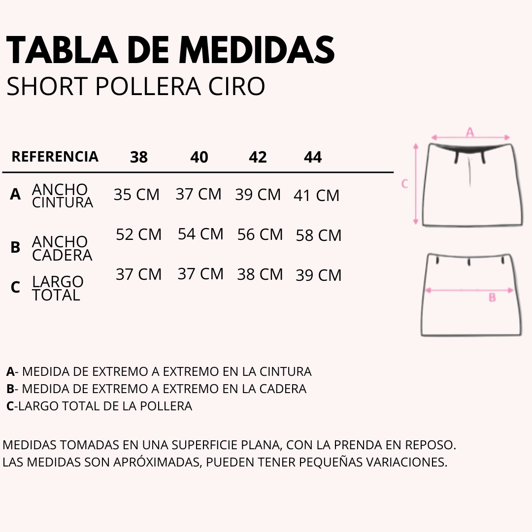 ✔️ Diseño: short interno, por afuera es pollera, solapa al frente, cierre lateral. Detalle de hebilla en el frente