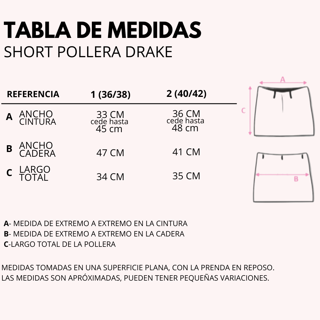 ✔️ Diseño: short interno, por afuera es pollera, elástico en la cintura trasera